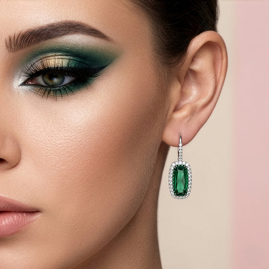 "Aureole" Cushion Cut Green Tourmaline Drop Earrings