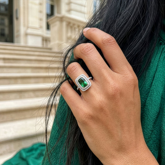 "Aureole" Cushion Cut Green Tourmaline Ring