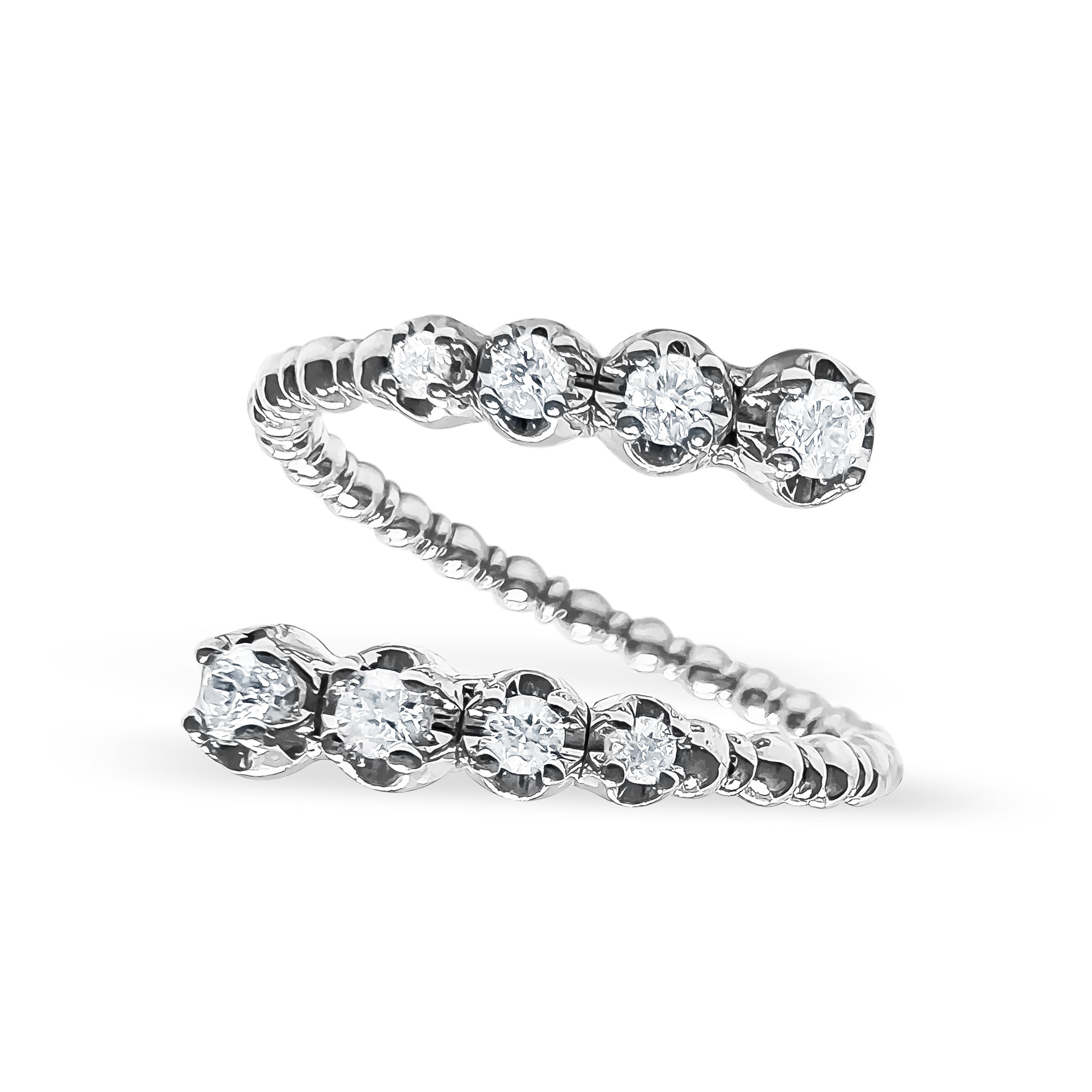 Add a touch of modern elegance with this uniquely designed flexible ring. This widely popular collection of flexible jewellery is the perfect addition to your collection. Available in white, yellow and rose gold, with a graduating array of diamonds the simple yet stylish look will add a modernised sparkle to your collection.