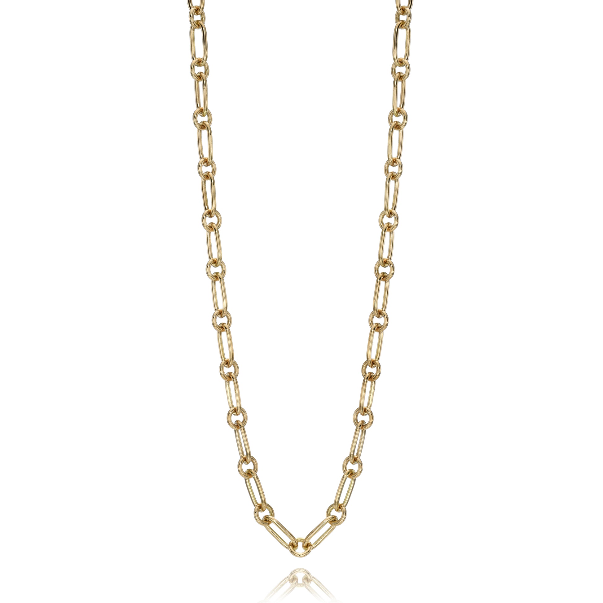 Handcrafted in yellow gold this chain, beautiful worn with pendants or worn alone is very versatile. Easy to layer or hook clasp at various lengths.