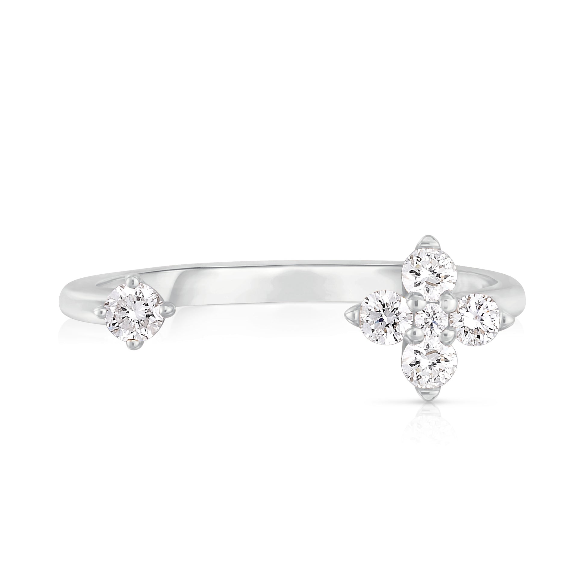 A delicate flower accent to any hand, this beautiful Moroccan Flower ring adorns the sides of the finger with a hint of sparkling round brilliant diamonds on each side.