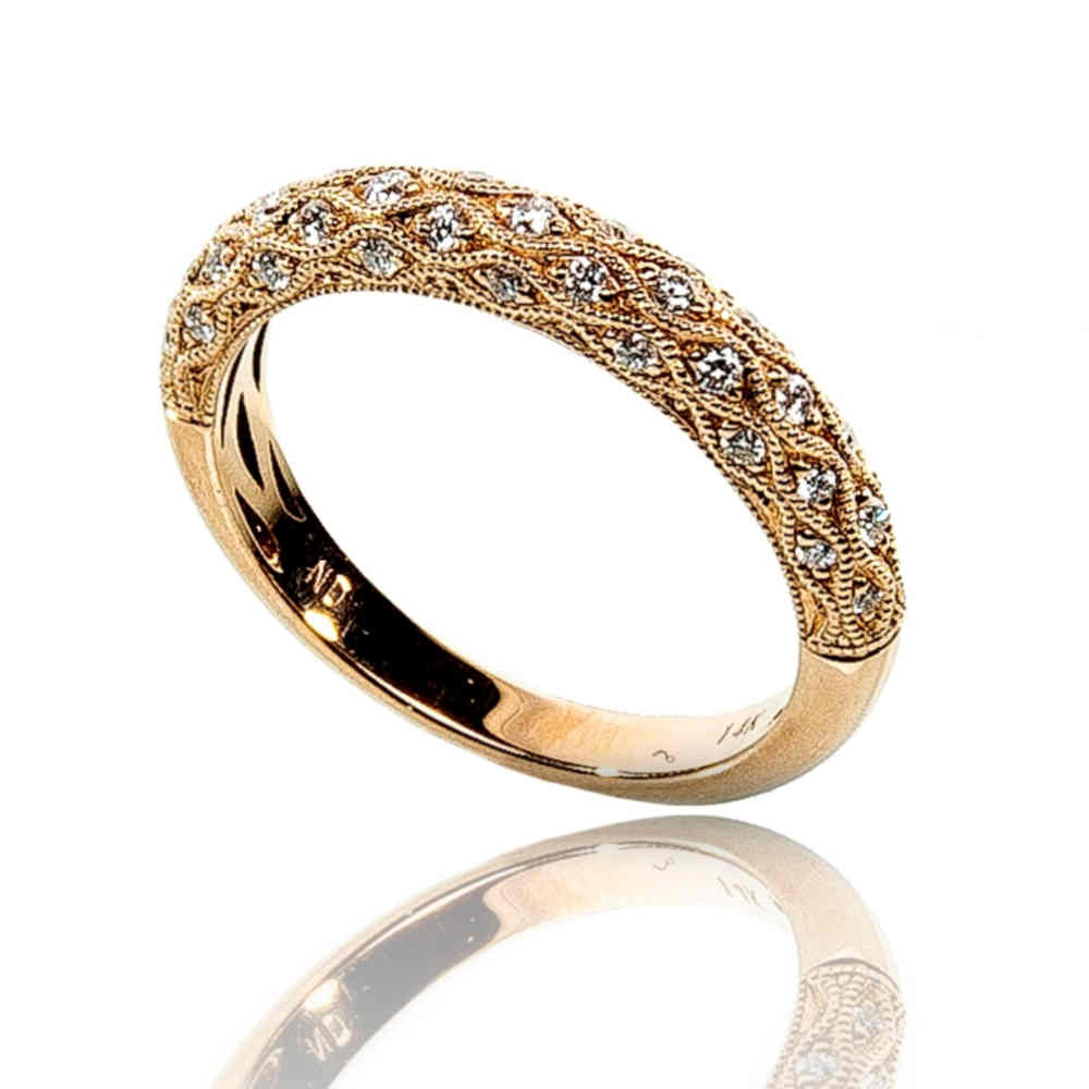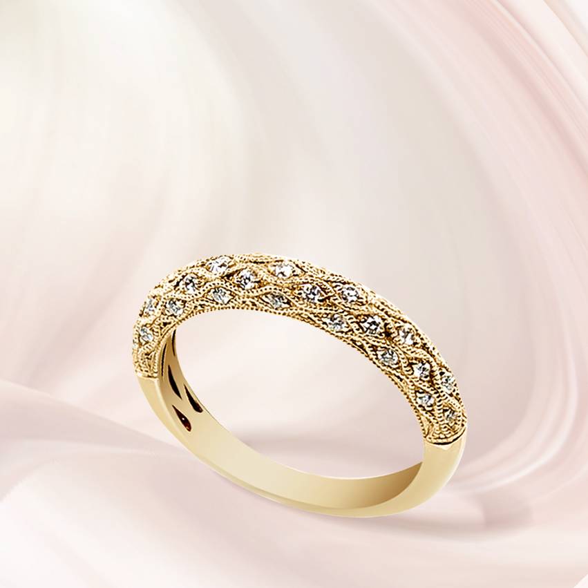 It’s all in the detail! An intricate mil-grain finish embellishes this stunning domed Diamond band. Add to your existing collection of rings or wear alone.